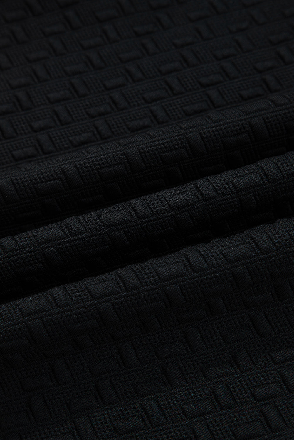 Black Stylish Textured Striped Patchwork Polo Collar Pullover Sweatshirt