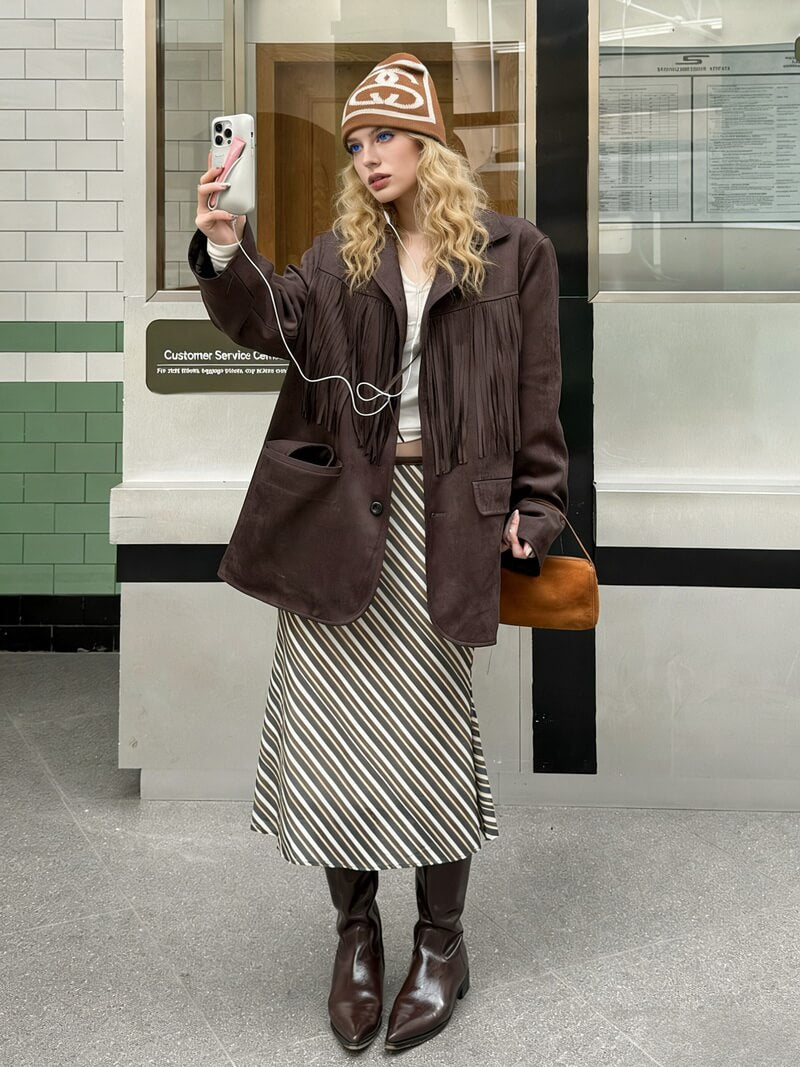 Signature Design: The carefully placed fringe accents add movement and visual interest, while the collar and multi-button front offer a classic, secure closure. Shoulder padding enhances the silhouette for a confident, structured look.