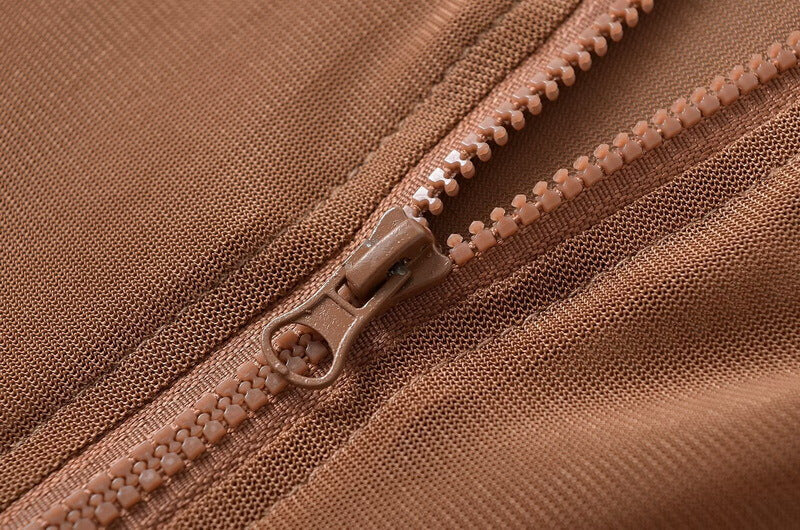 Sheer mesh panel detailing with a stylish zip-front design