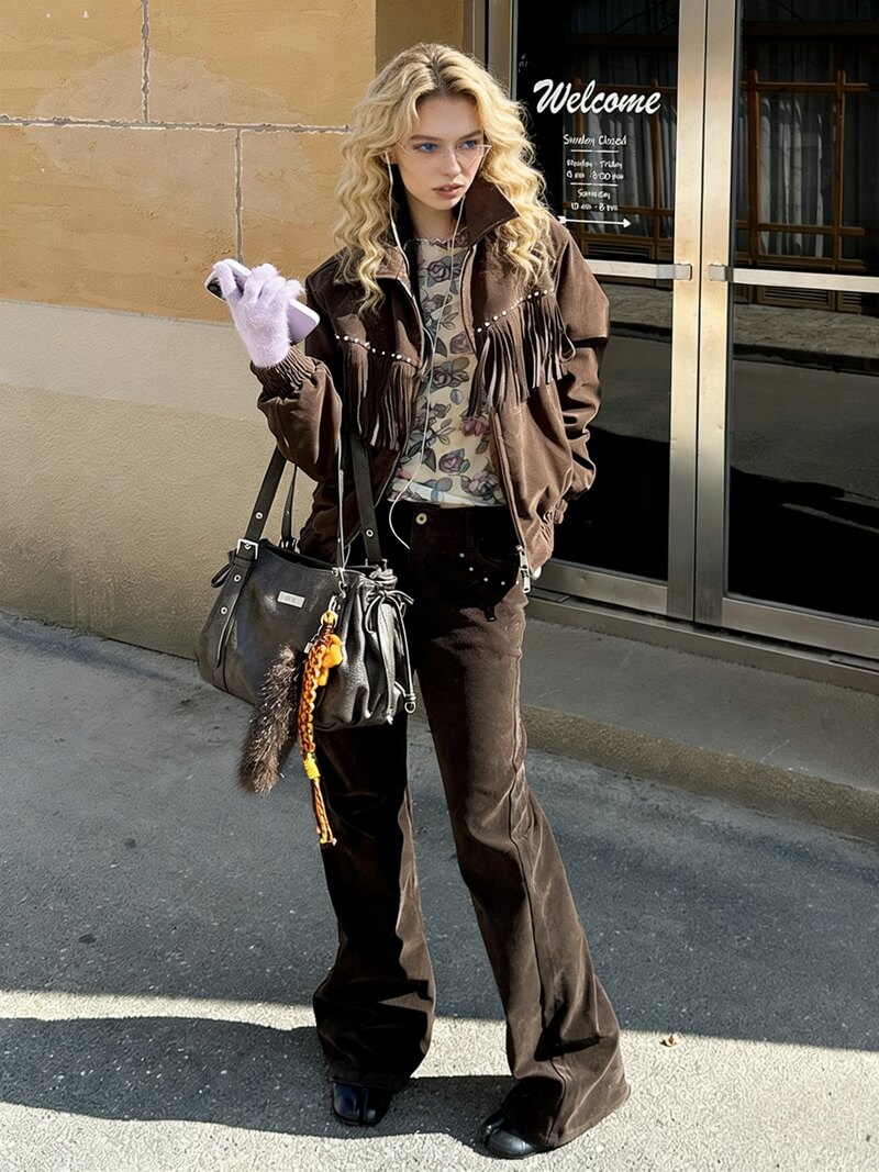 Bold, textured, and unmistakably cool, the NURO Vintage Washed Suede-Look PU Pants blend ’70s-inspired flare with modern streetwear attitude. Featuring a distressed finish, stud accents, and a suede-like surface, these pants are built to make a statement while delivering all-day comfort.