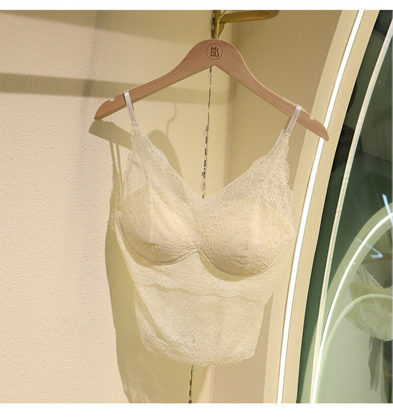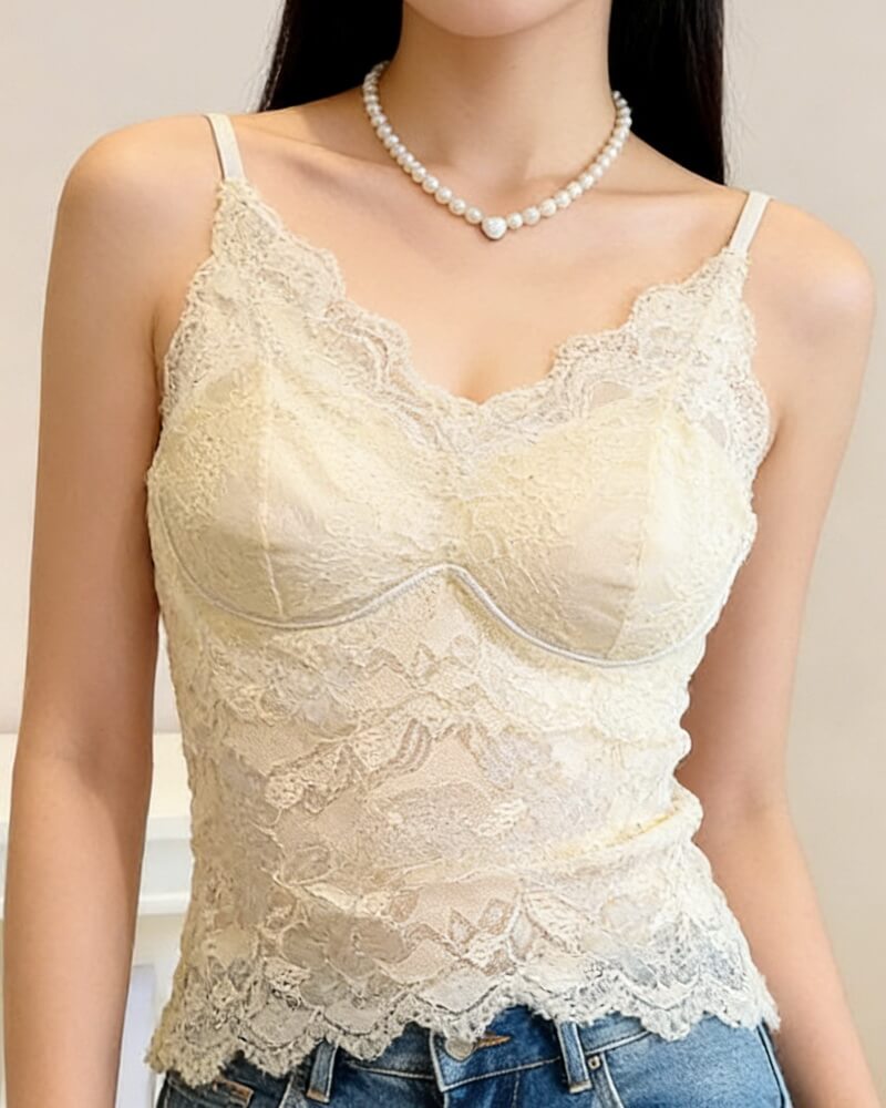 NURO Women's Built-In Bra Cami Top, Lace Trim French Style Bralette