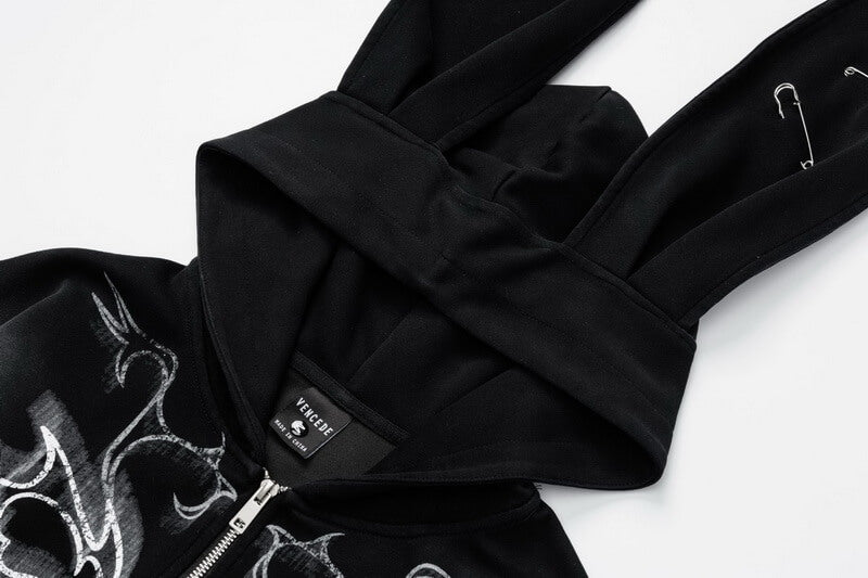 Playful Bunny Ear Hood: Features a unique hood with cute bunny ear details, adding a fun and trendy touch to your casual look.