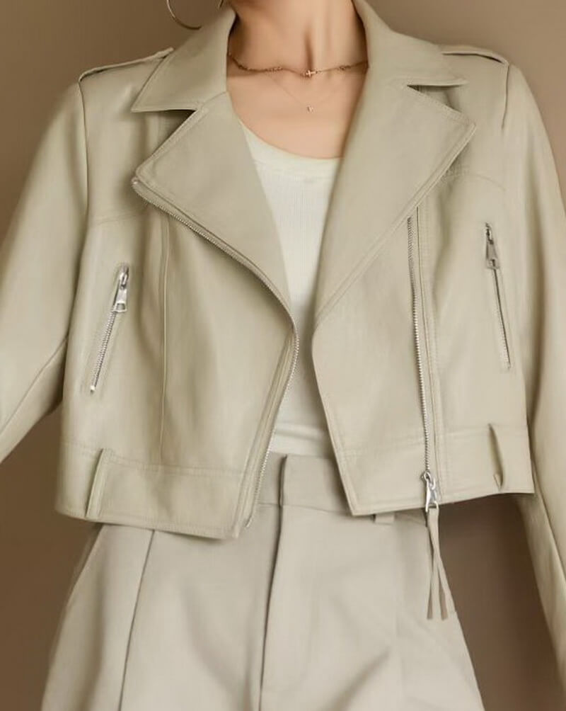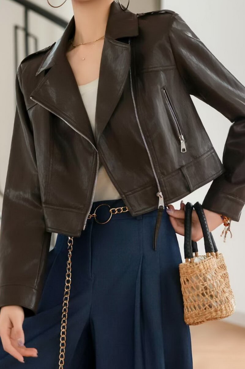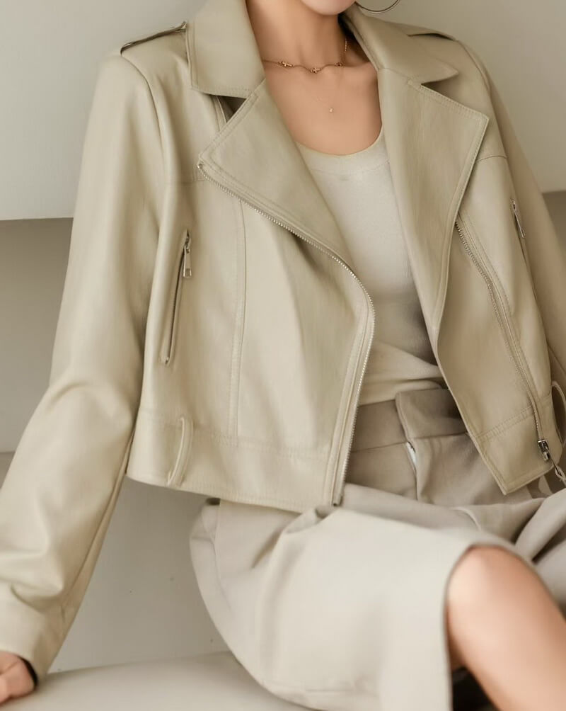 - Iconic Biker Silhouette: Features an asymmetric zip front, notched lapel collar, and functional zippered pockets for an authentic, edgy look.