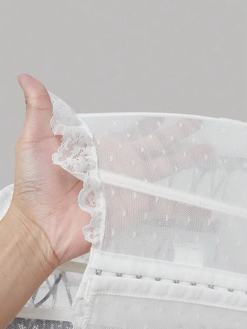 Crafted from delicate lace and reinforced with flexible boning, it offers gentle shaping and support while maintaining a feminine and elegant look. A sweet bow accent adds a touch of romance, making it perfect for both daytime styling and evening elegance.