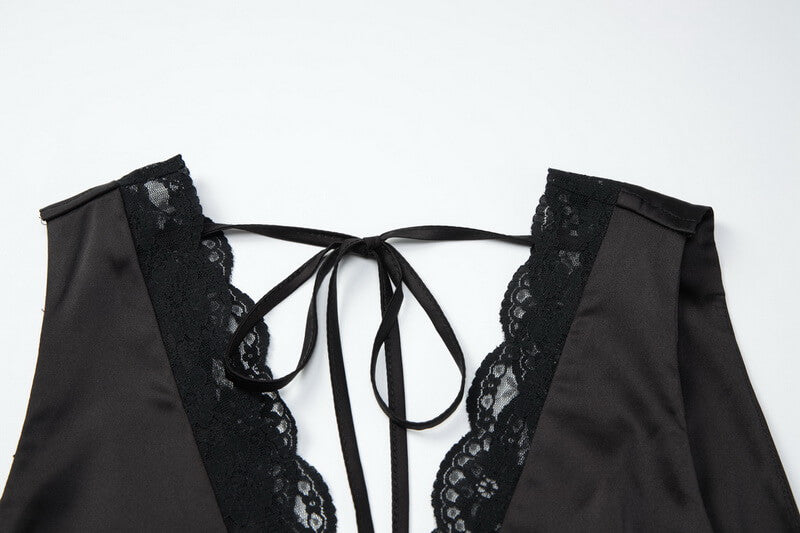 NURO Women's Deep V Lace Trim Sleeveless Backless Bodycon Dress, Sexy Slit Long Dress for Winter