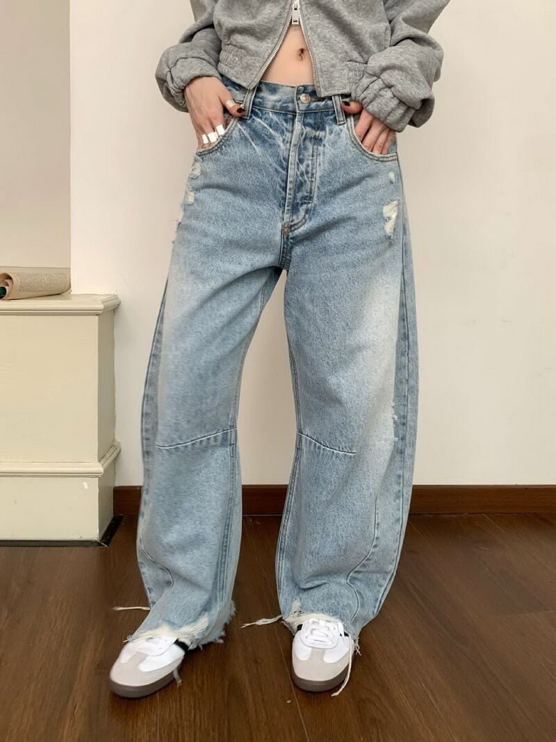 Style: Wide Leg, Curved Hem, Distressed Jeans