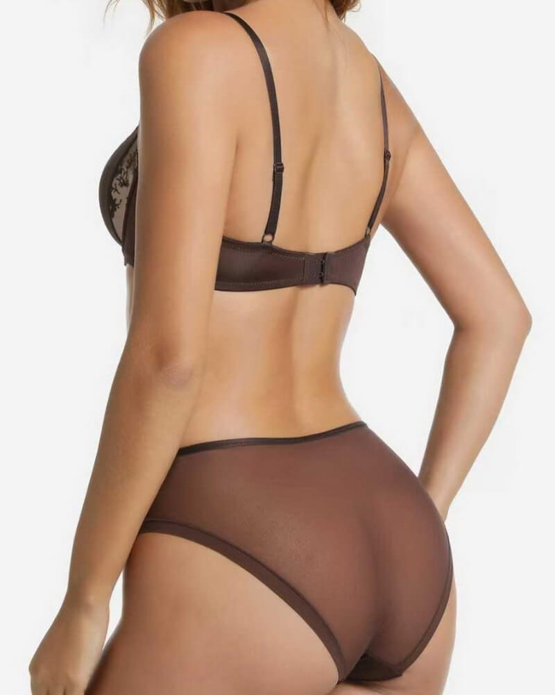 NURO Women's Embroidered Colorblock Lace Underwire Bra Set