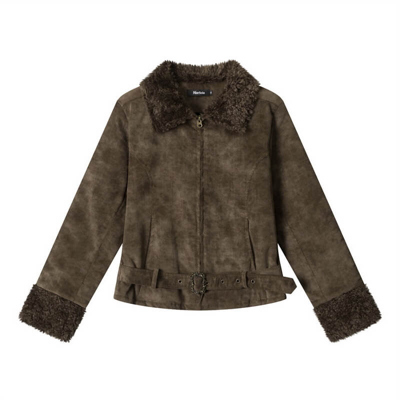 Step into winter warmth and style with the NURO Faux Shearling Collarless Short Jacket. Crafted from 100% cotton and filled with soft cotton insulation, this jacket ensures cozy comfort without compromising on breathability. Its slim-fit design and cropped length create a sleek, modern silhouette that pairs effortlessly with high-waisted jeans, skirts, or layered outfits. The front zipper and adjustable waist belt allow for a personalized fit, while the clean, collarless neckline adds a minimalist edge. Whether you're exploring the city or meeting friends, this jacket blends retro charm with urban versatility for a standout cold-weather look.