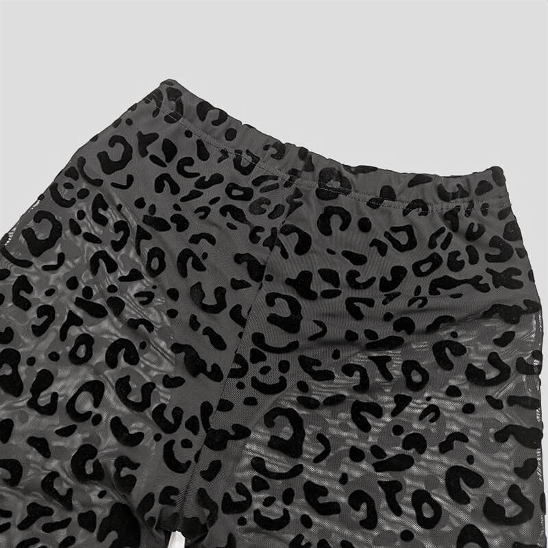 Daring & Trendy Design: These pants feature a bold combination of sheer mesh panels with a sexy flocked leopard print pattern and a dramatic wide flare leg, creating an eye-catching, fashion-forward statement for confident style.