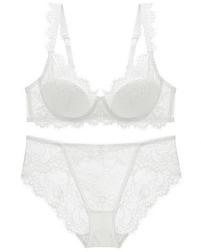 NURO Women's French Lace Minimizer Bra Set