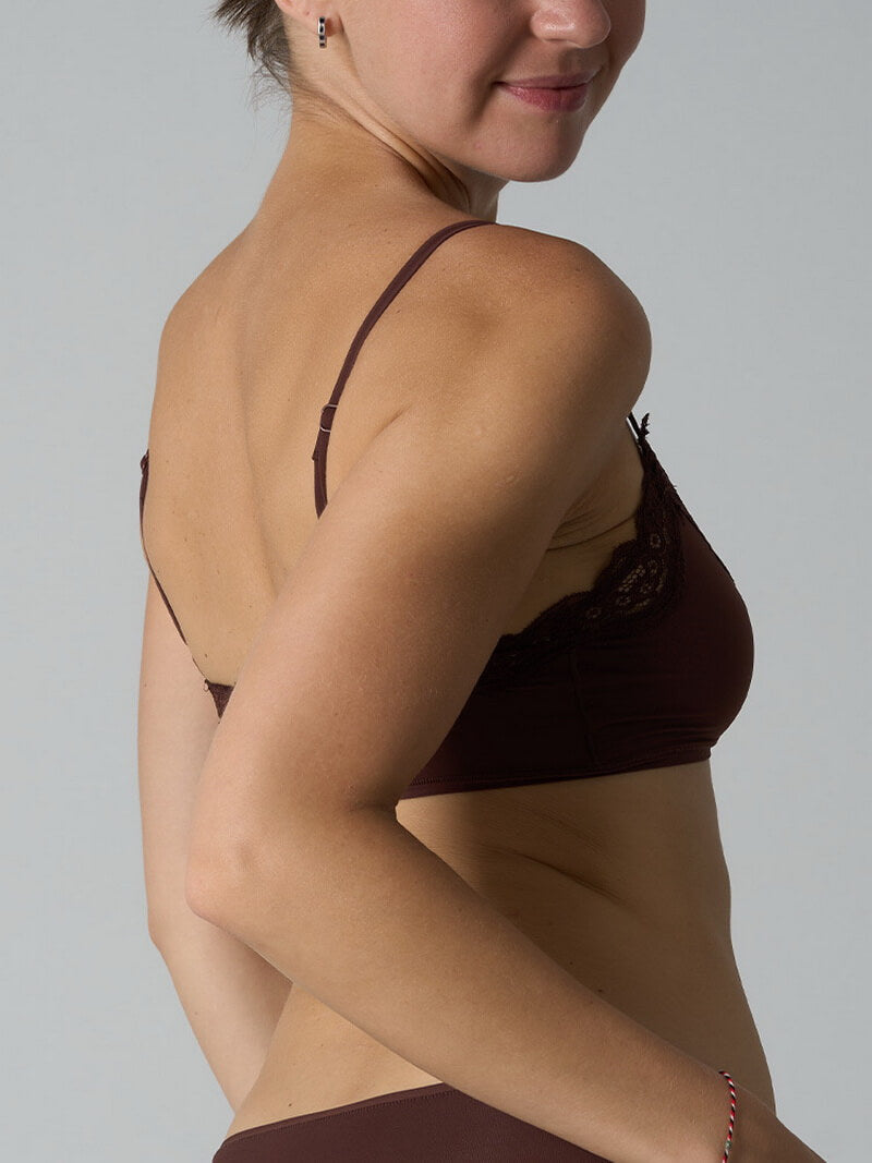 NURO Women's French Style Lace Bralette, Wire-Free Scoop Neck Comfort Bra