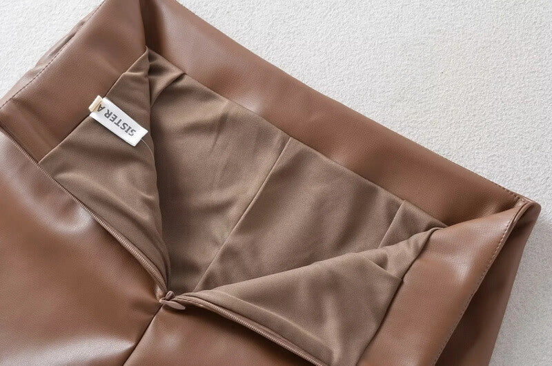 Made from smooth, non-stretch PU material that offers a sleek, body-hugging fit with a subtle sheen.
