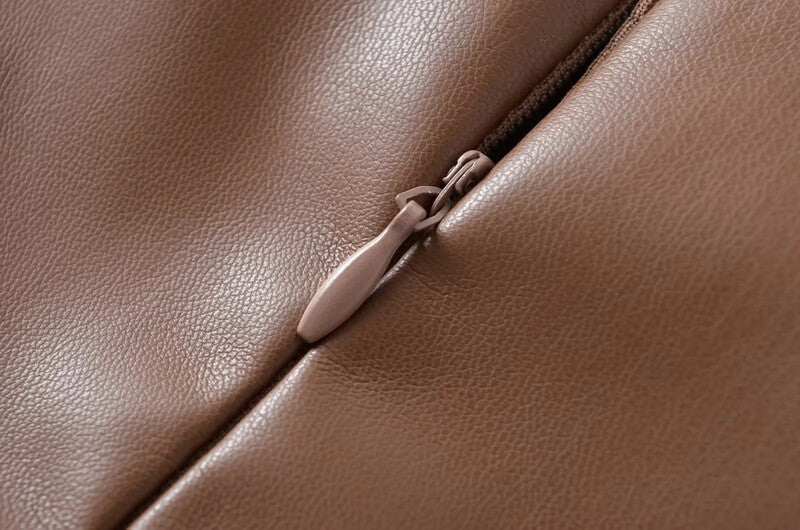 Zipper detailing adds a contemporary edge, enhancing the skirt’s sleek and tailored appearance.
