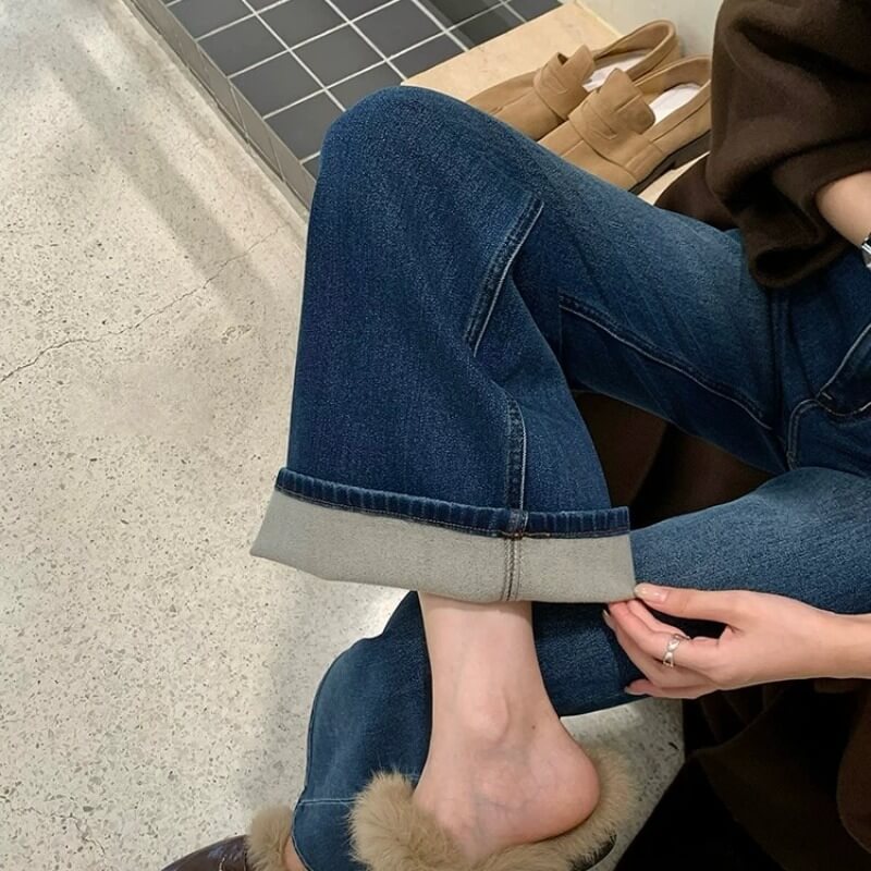 Embrace warmth and style with NURO's flared fleece-lined jeans—where vintage design meets winter-ready comfort.