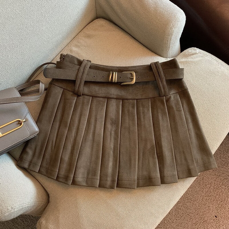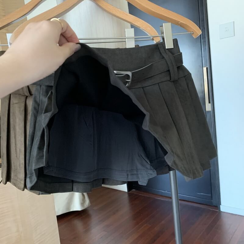 Elevate your cold-weather wardrobe with NURO's pleated mini skirt—where texture meets timeless style.