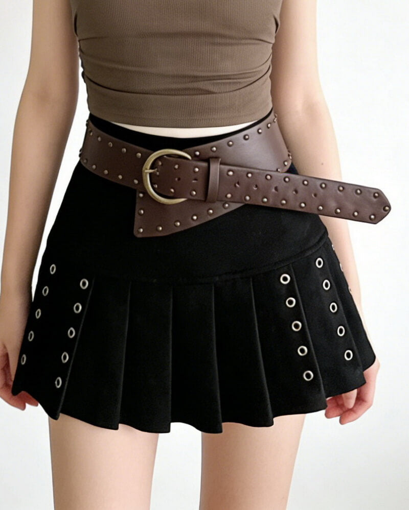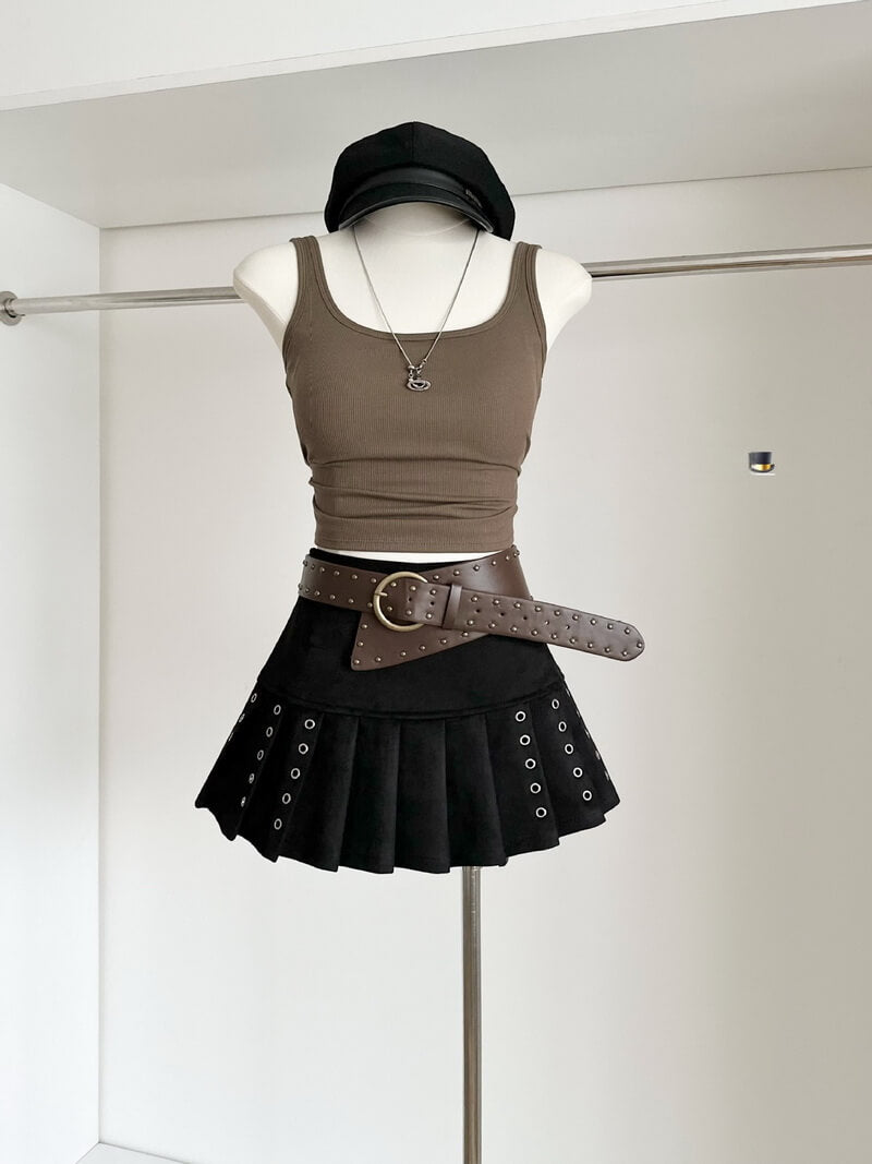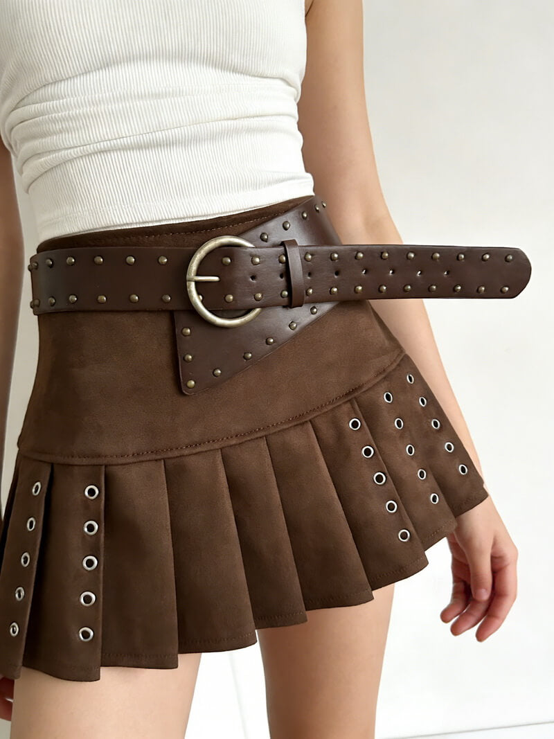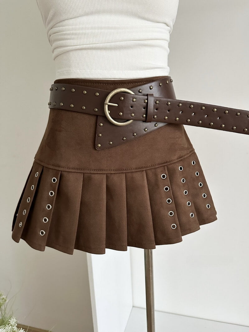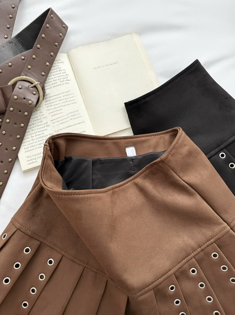 Add a touch of autumn luxury to your wardrobe with NURO's pleated mini skirt—where texture meets timeless style.