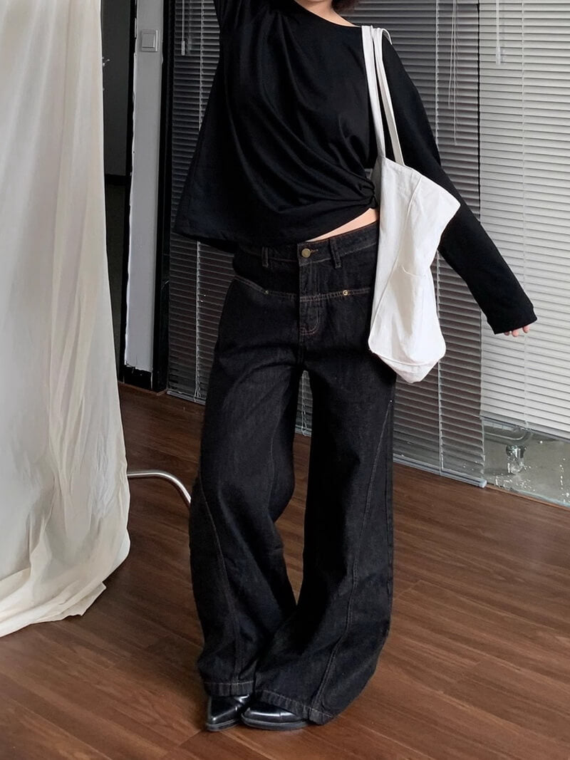 High-Waisted Straight Leg Design: Flattering high-rise waist and straight-leg cut for a timeless silhouette.