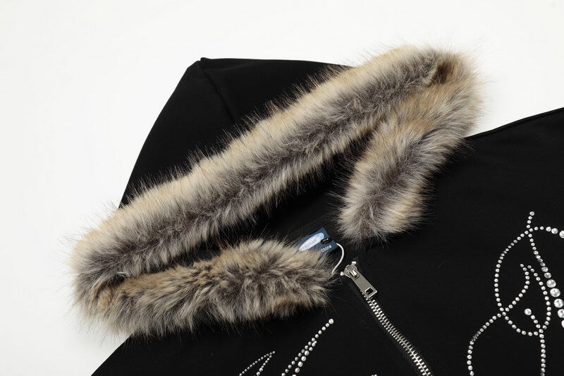 NURO Women's Hooded Zip-Up Sweatshirt, Retro Streetwear Style Cardigan
