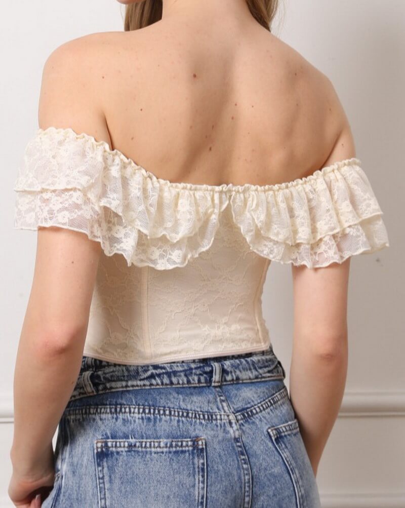Style: Corset Bustier, Off-Shoulder, Shapewear, Lace Top