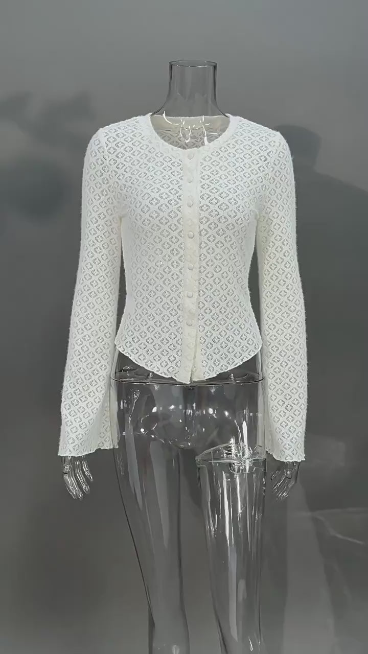 NURO Women's Lace Trim Knit Cardigan with Flared Sleeves