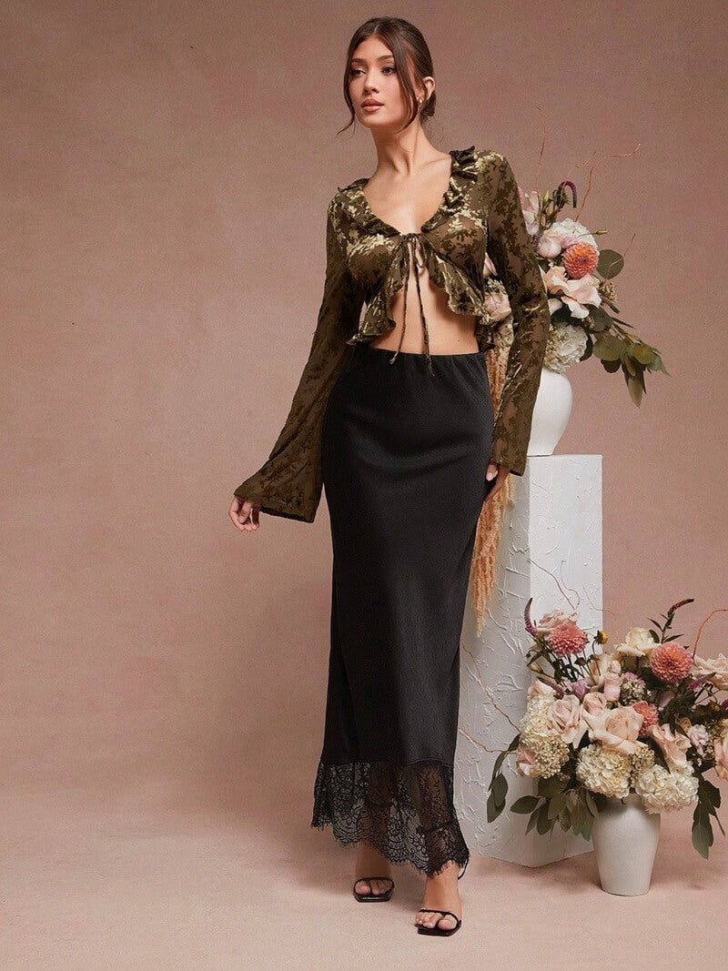 Design: Lace Detailing, A-Line, High Waist, Maxi Length