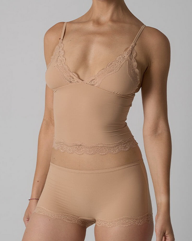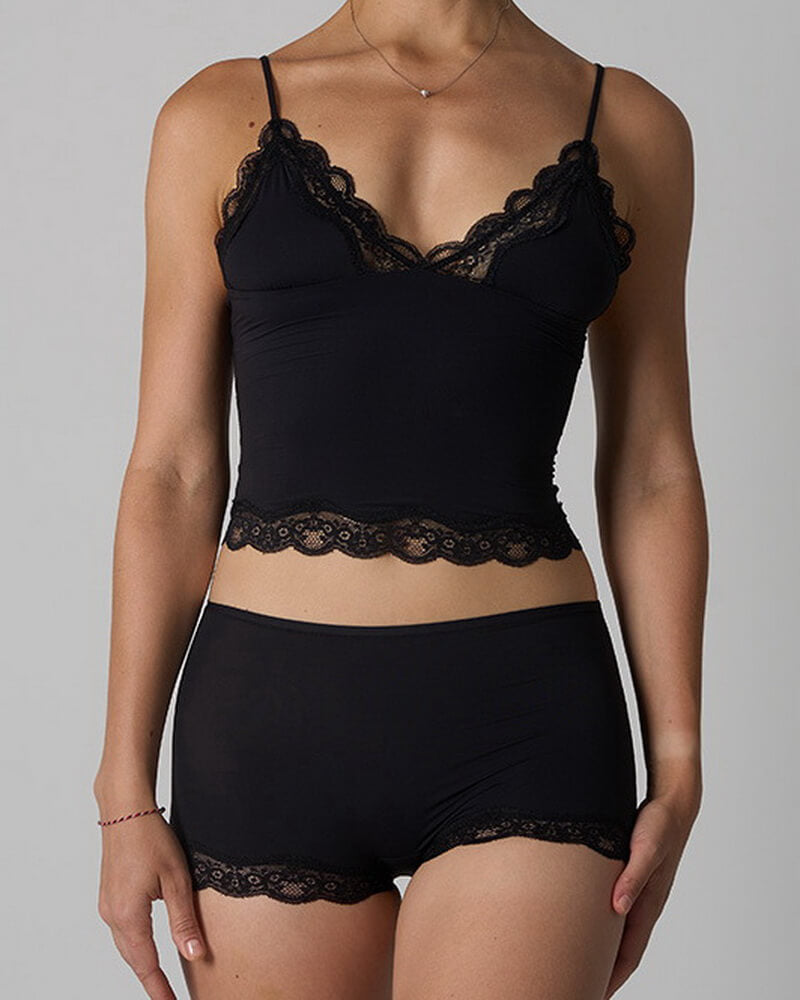 NURO Women's Lace Trim Sleepwear Set, V-Neck Camisole and Shorts Pajamas