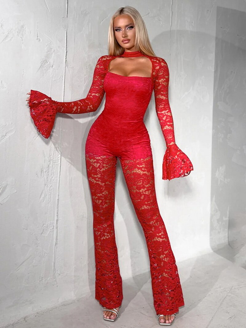 Daring & Fashion-Forward Design: This statement jumpsuit features a bold lace-up front detail, dramatic flared sleeves, and a sleek high-waist silhouette, creating a head-turning look perfect for nights out and special events.