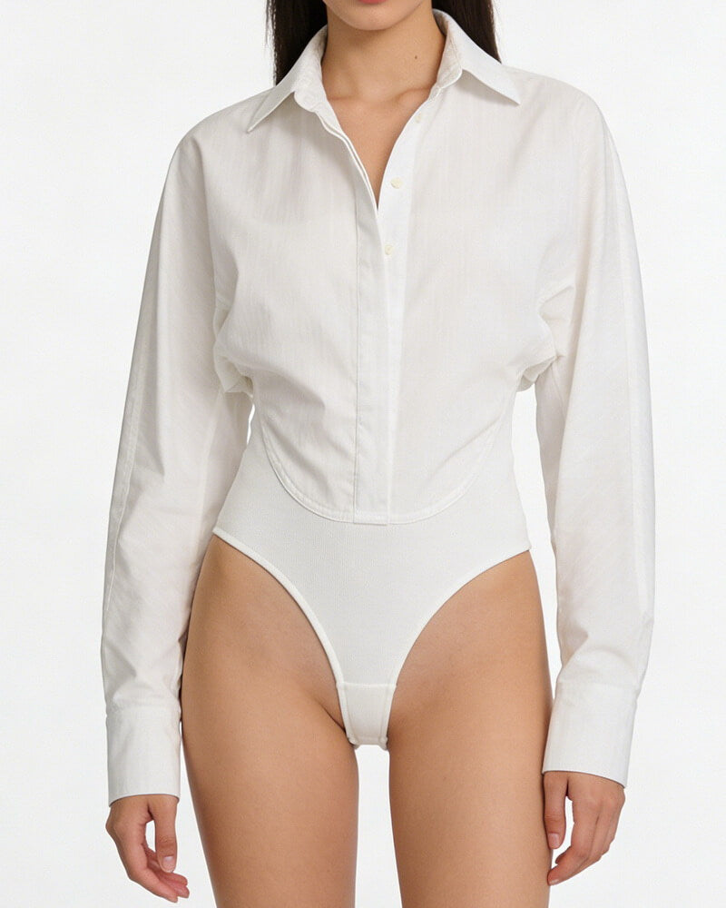 NURO Women's Long Sleeve Jumpsuit, Layered Shirt Style Bodysuit