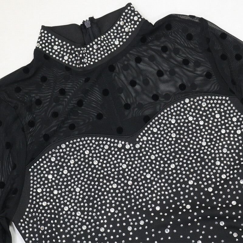 Elegant sequin detailing and sheer mesh panels create a glamorous and sophisticated look.