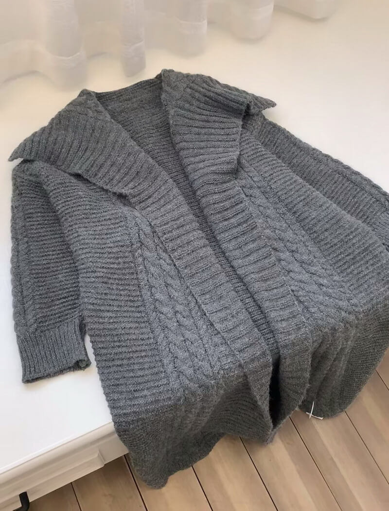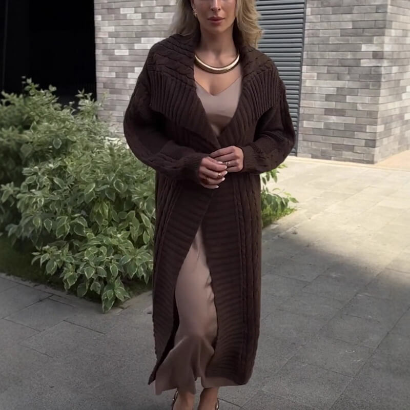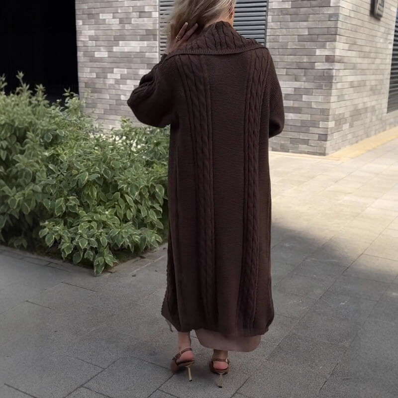 Make a statement with the NURO Longline Cable Knit Cardigan. Where dramatic proportions meet timeless texture, this oversized sweater coat redefines casual elegance through its flowing silhouette and artisanal cable knit details. Designed for those who appreciate both comfort and impactful style.