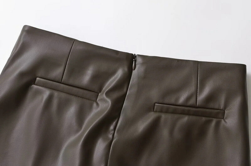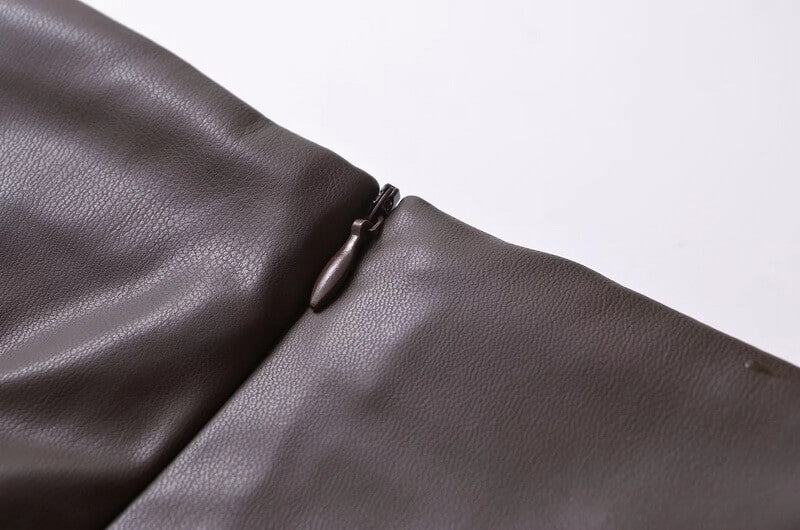Made from smooth, non-stretch PU material that offers a sleek, body-hugging fit with a subtle sheen.