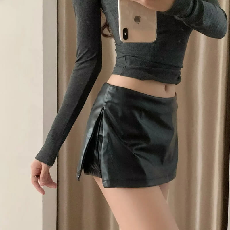 NURO Women's Low Waist Double Slit PU Mini Skirt