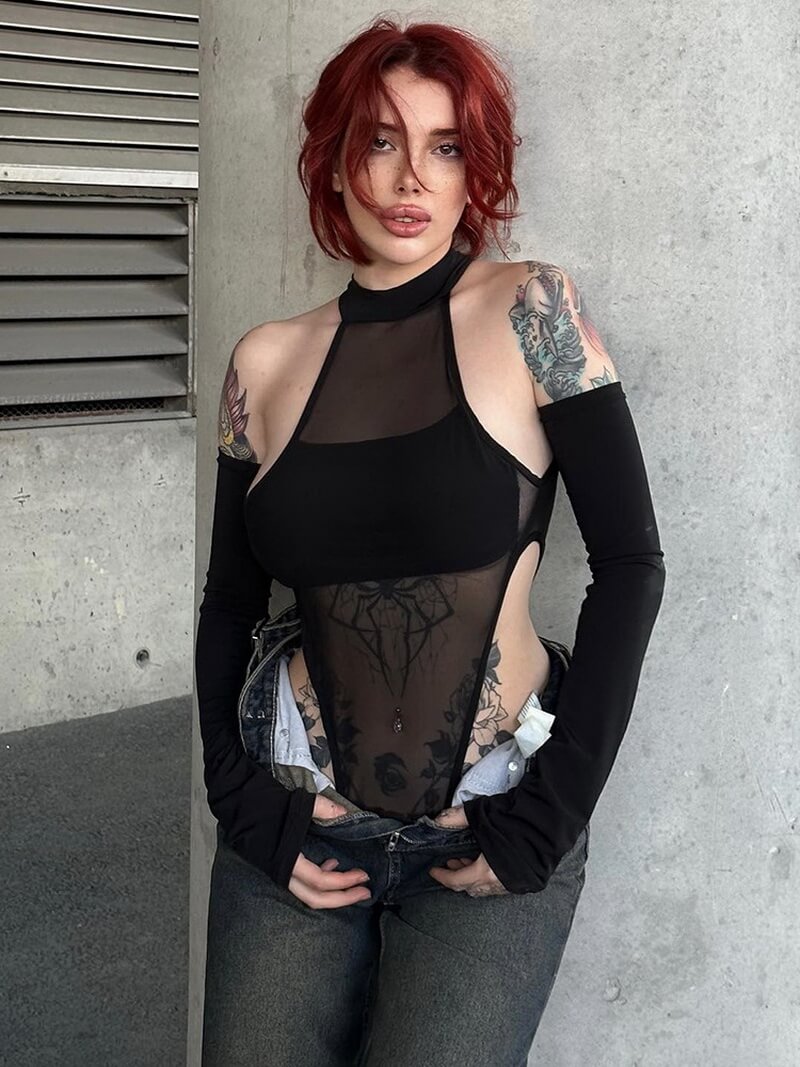 Sheer Mesh Cutout Design: Strategically placed sheer panels create a daring and modern aesthetic.