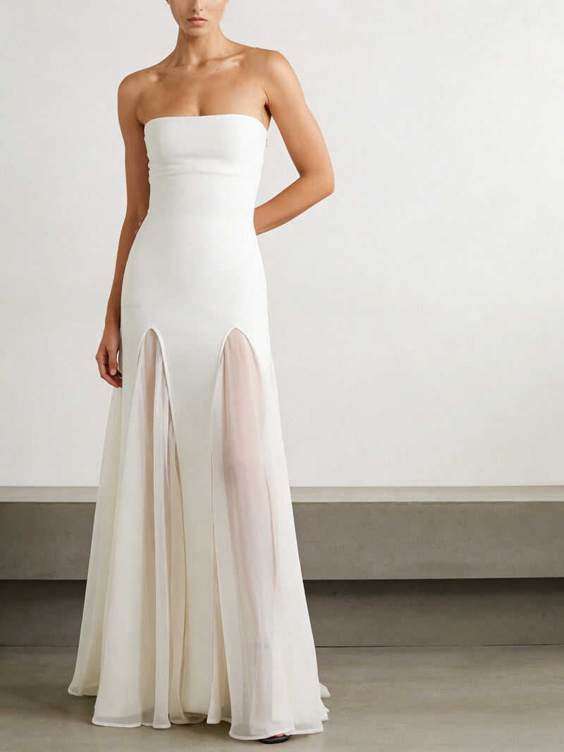 Make a breathtaking entrance in the NURO Mesh Panel Bandage Gown. This exquisite evening dress combines the sleek, contouring fit of a bandage dress with delicate mesh panels for a look that’s both sensual and refined. Crafted from a smooth polyester blend, it hugs your curves while the strapless design offers a timeless, elegant frame. Whether you're attending a wedding, a black-tie gala, a formal dinner, or a special celebration, this gown ensures you’ll stand out with confidence, grace, and head-turning style. Pair it with statement jewelry and heels for a complete red-carpet-ready ensemble.