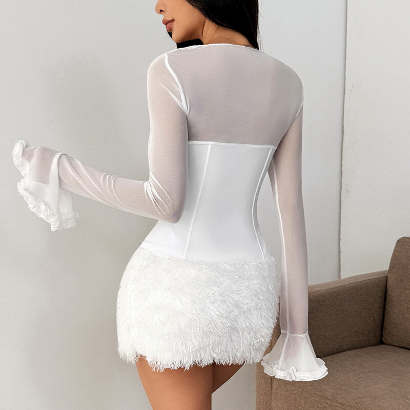 NURO Women's Off-Shoulder Bell Sleeve Lace-Up Top