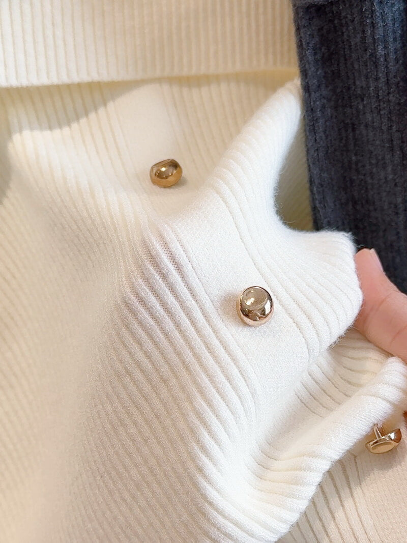 Add a touch of Parisian flair to your wardrobe with NURO's off-shoulder knit top—where simplicity meets sophistication.