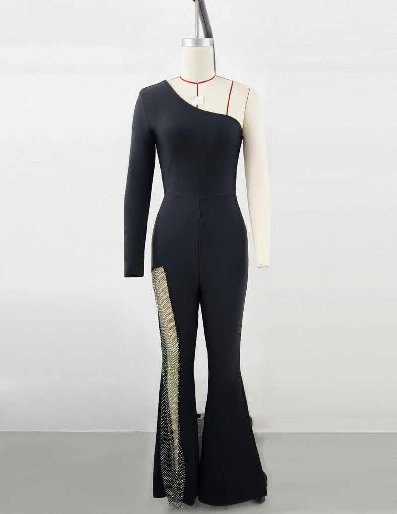 Make a stunning entrance in the NURO Off-Shoulder Mesh Jumpsuit. This chic one-piece combines modern wide-leg elegance with glamorous mesh and rhinestone accents for a look that’s both sophisticated and daring. Crafted from a sleek polyester blend, it offers a comfortable fit with a flattering high waist and flowing wide legs. The off-shoulder neckline adds a touch of romance, while the long sleeves provide a balanced silhouette. Whether you're attending a cocktail party, a formal dinner, or a night out on the town, this jumpsuit ensures you’ll shine with confidence, style, and head-turning appeal.