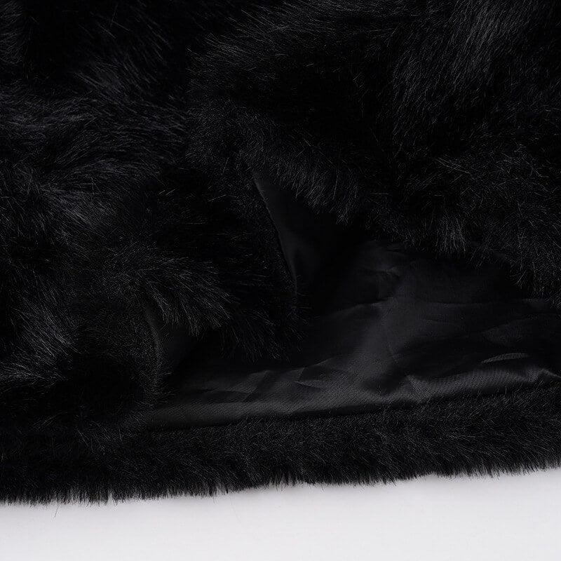 Edgy patchwork design combining faux fur and stretch knit materials for a bold street-style statement.