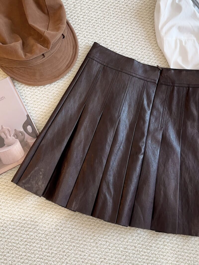 NURO Women's PU Leather Pleated Skirt – High Waist A-Line Mini Skirt
