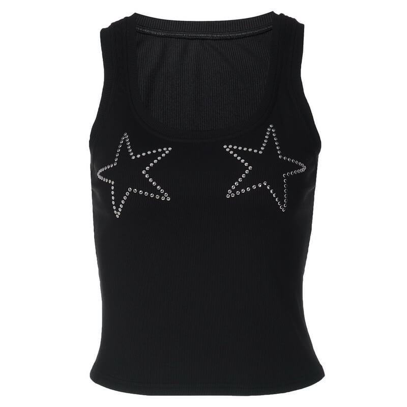 NURO Women's Rhinestone Embellished Sleeveless Crop Top, Ribbed Slim Fit Bralette