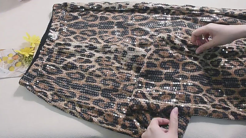 Dazzling Design: Features a bold leopard print pattern accented with shimmering sequins for a textured, eye-catching look.