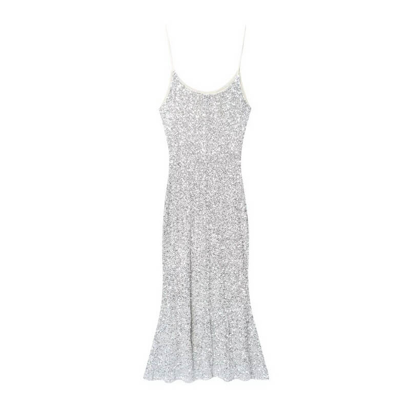 All-Over Sequin Embellishment: Intricate sequin detailing covers the dress, creating a radiant, head-turning shine that catches the light beautifully.
