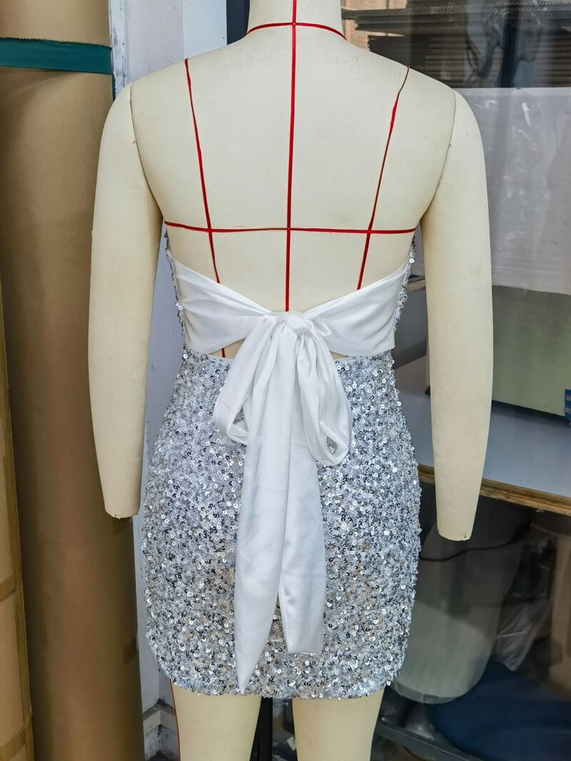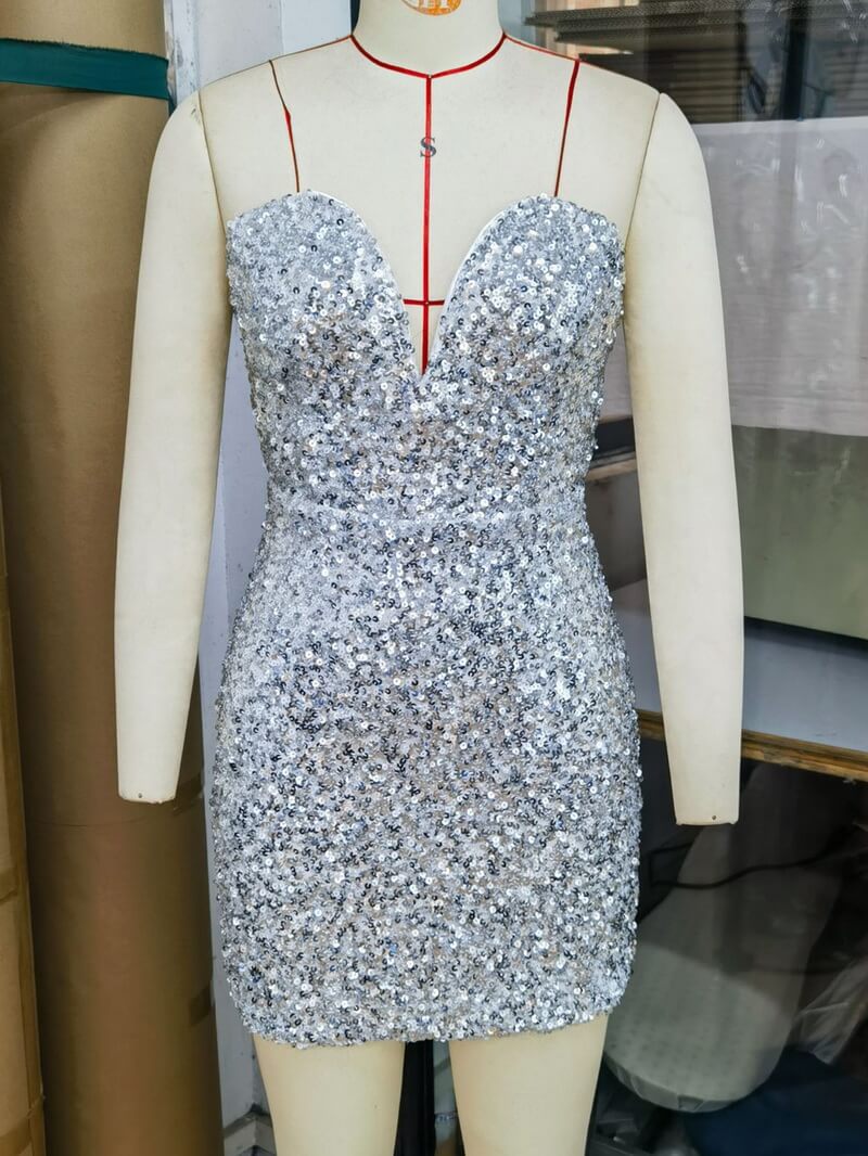 sequin dress, strapless dress, bandage dress, bodycon dress, mini dress, party dress, nightclub dress, evening dress, deep v neck dress, lace up back dress, sparkly dress, women's occasion wear, sexy dress, elegant dress