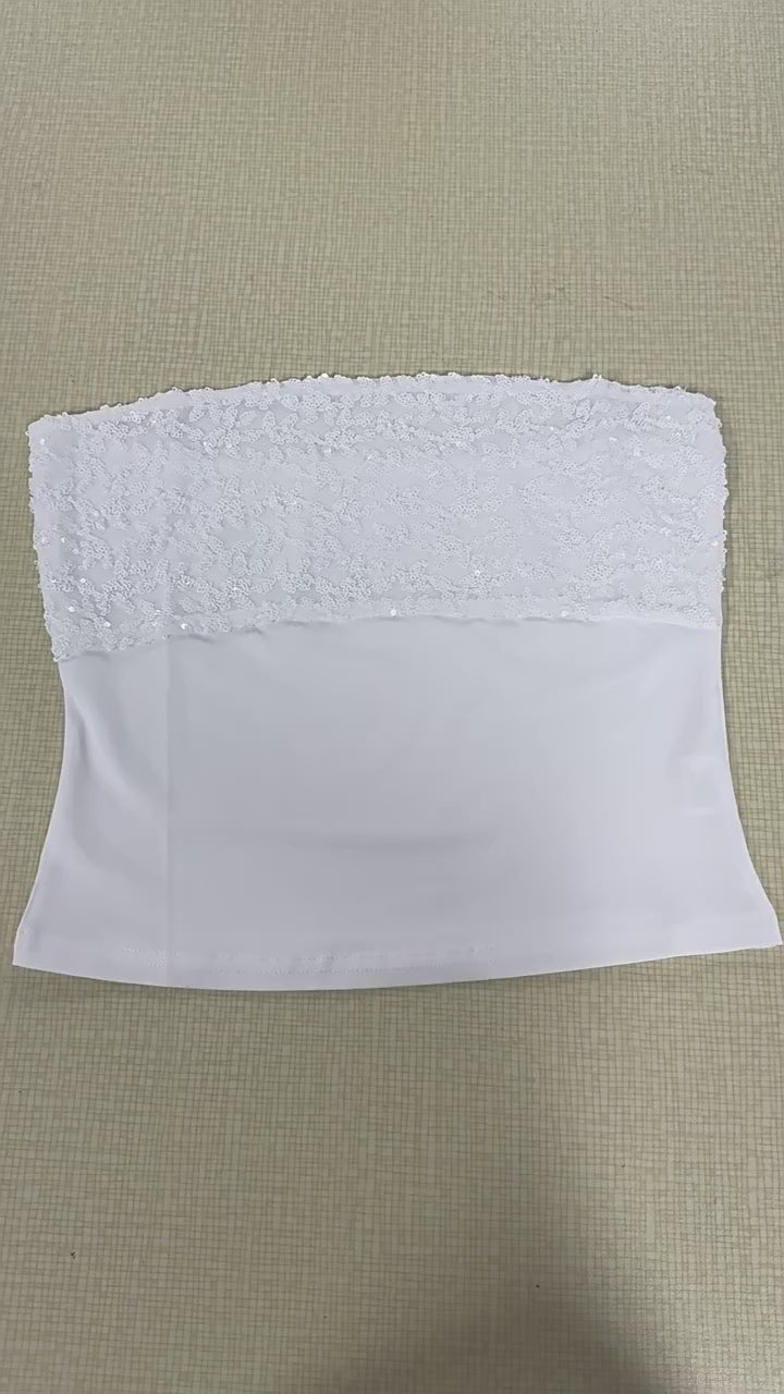 Features a strapless tube top design with a crop length and chic sequin embellishments for a dazzling, eye-catching look.