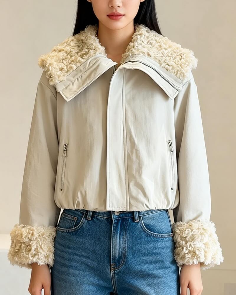 Style: Zip-Up Jacket, Oversized, Large Collar, Fleece Coat