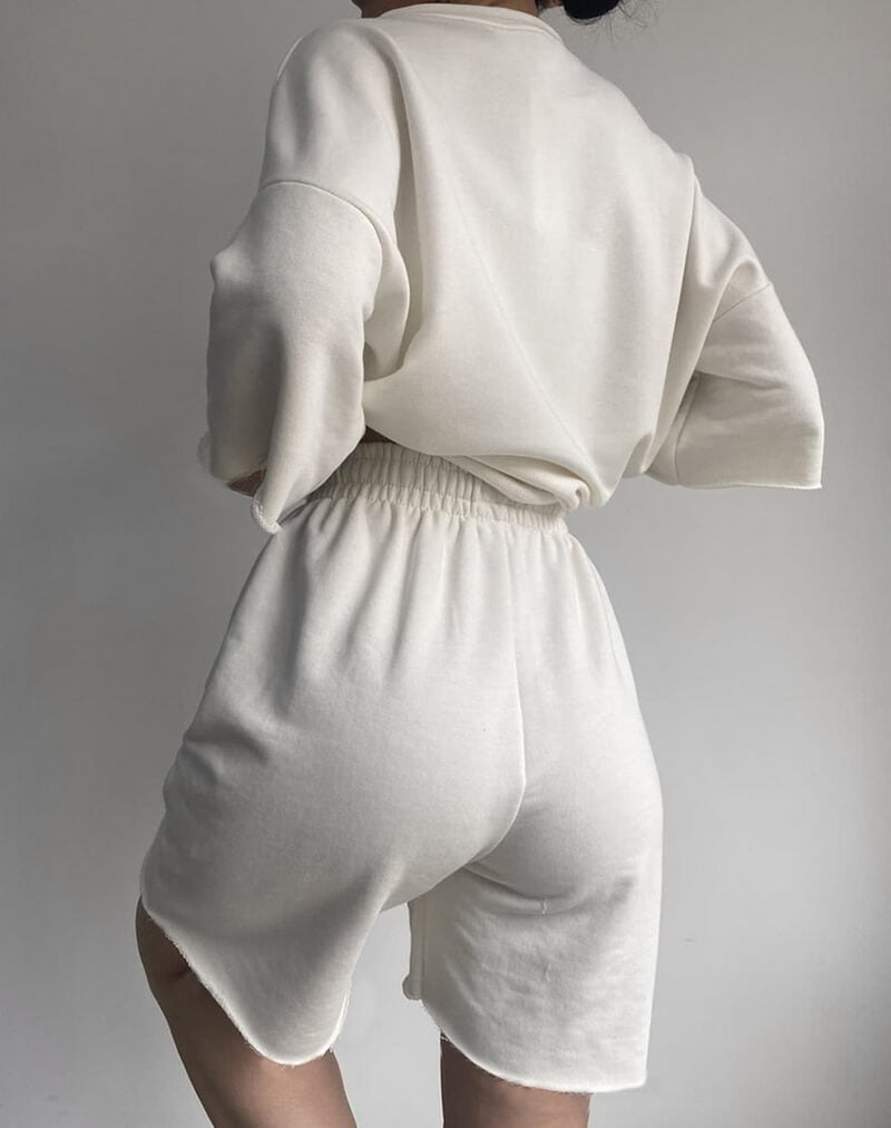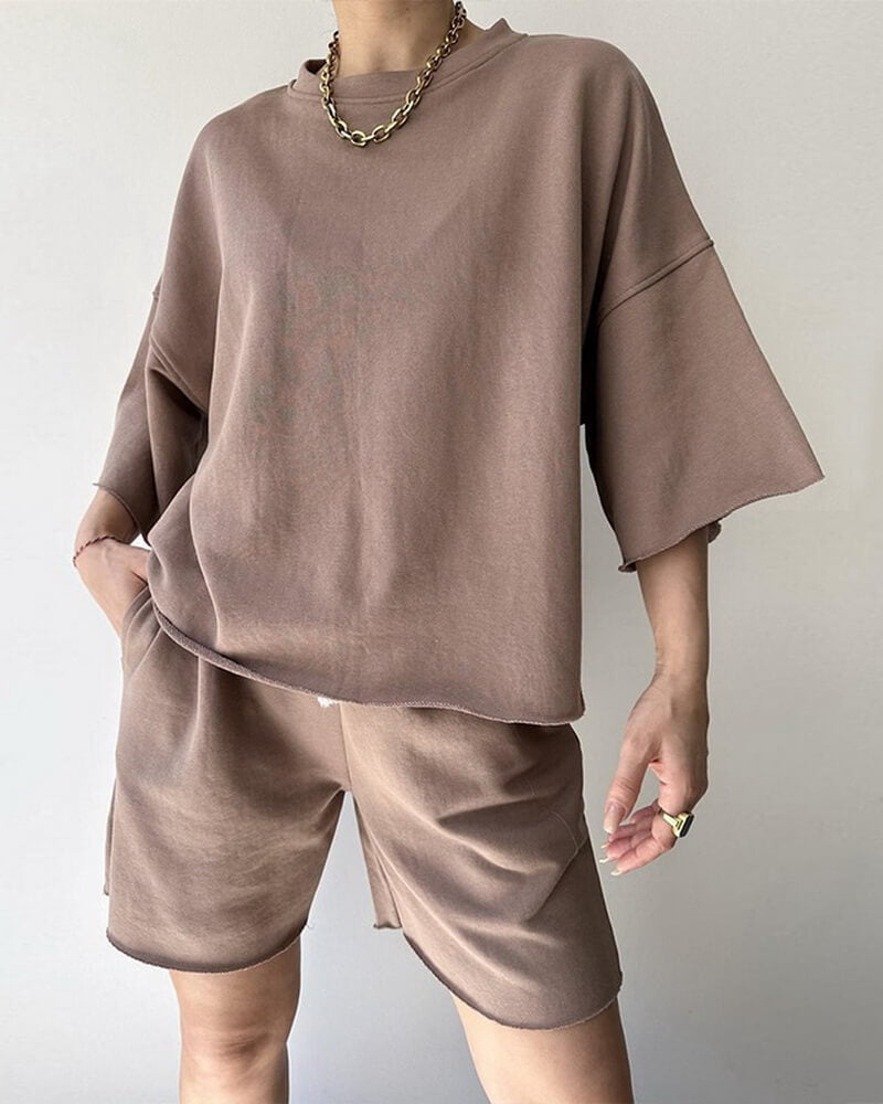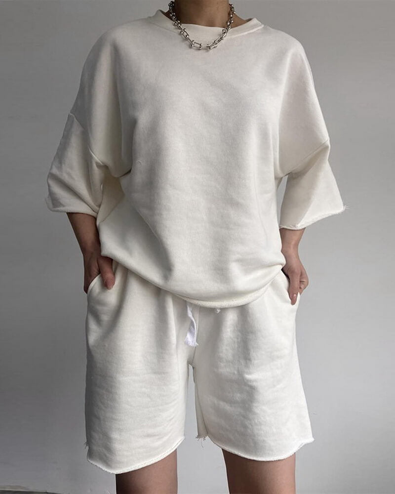 Matching mid-length shorts with adjustable drawstring waist
