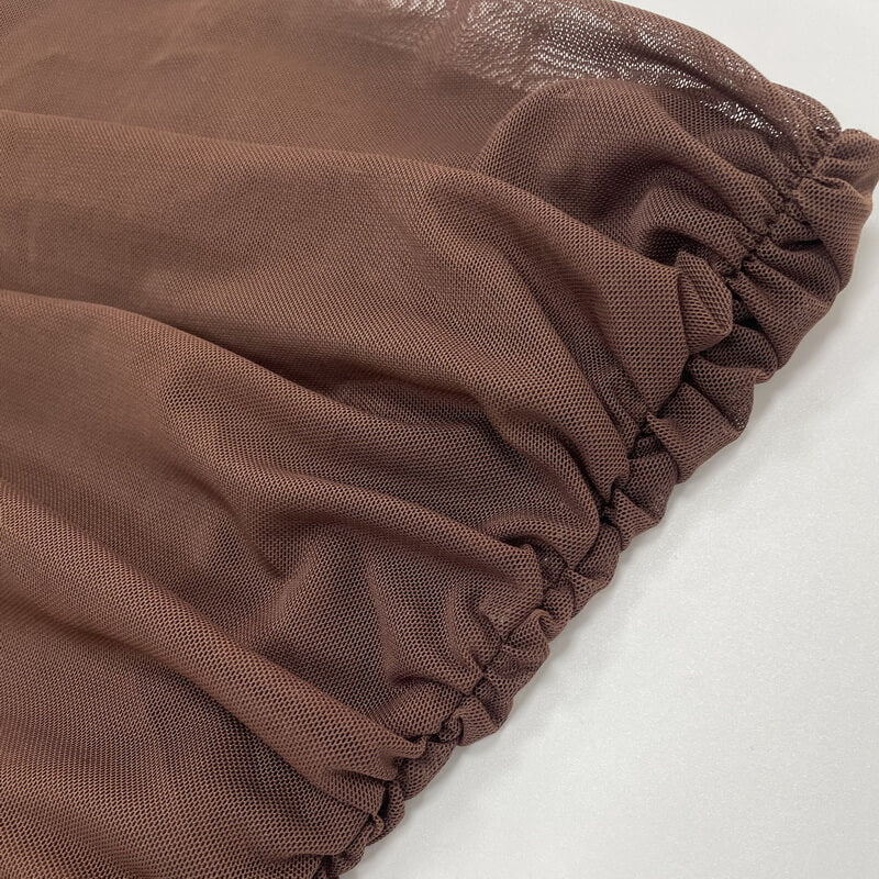 Care Instructions: Hand wash or dry clean recommended to preserve delicate mesh and ruching details.