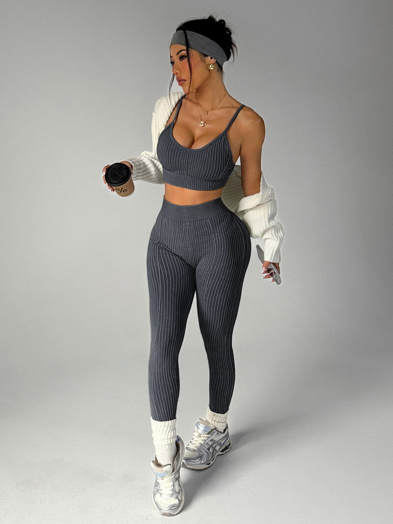 Style: Two-Piece Set, V-Cut Waistband, High-Waist Pants, Seamless Sports Bra, Sleeveless