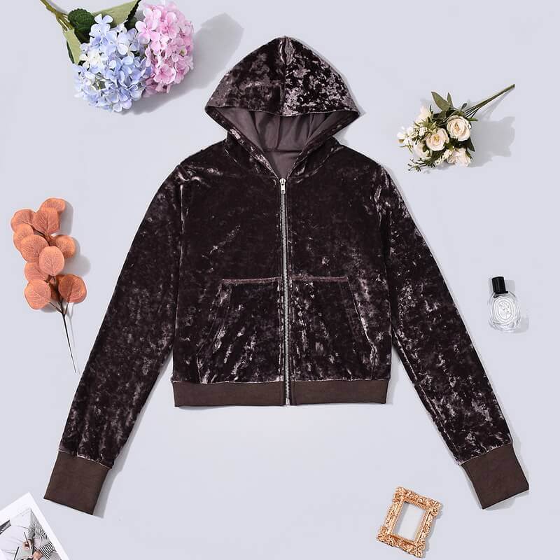 NURO Women's Velvet Hooded Sweatshirt and Shorts Set - Zipper Front, Long Sleeve, Casual Lounge Outfit