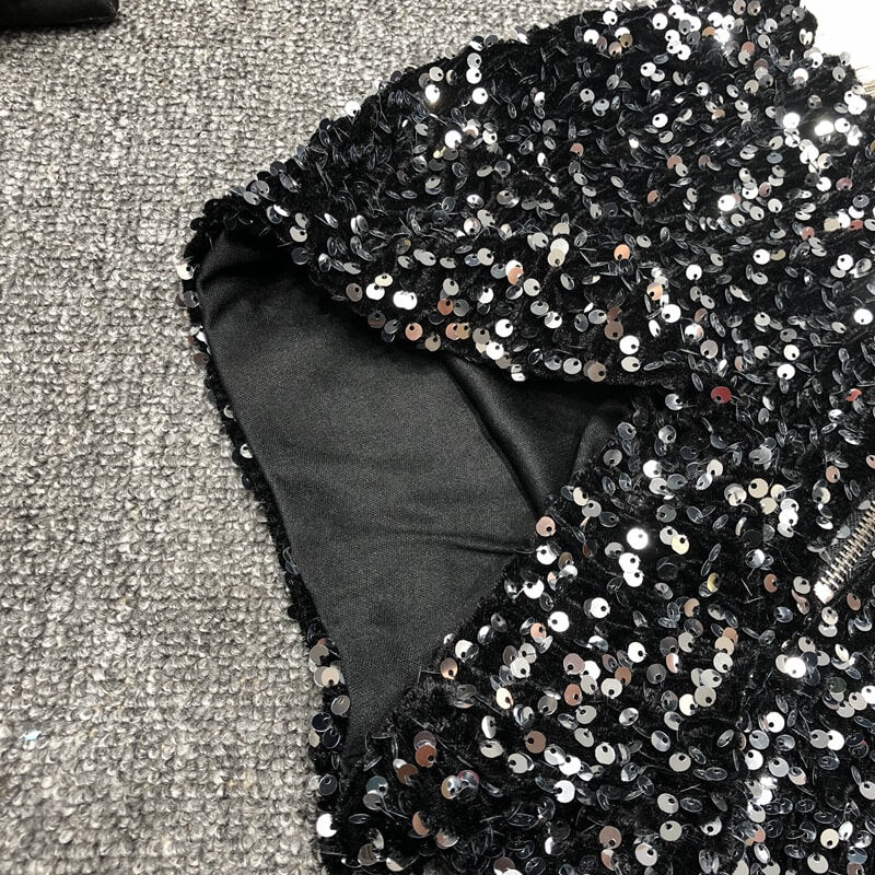 Velvet & Sequin Combination: Plush velvet fabric enhanced with sparkling sequin accents for a luxurious look.